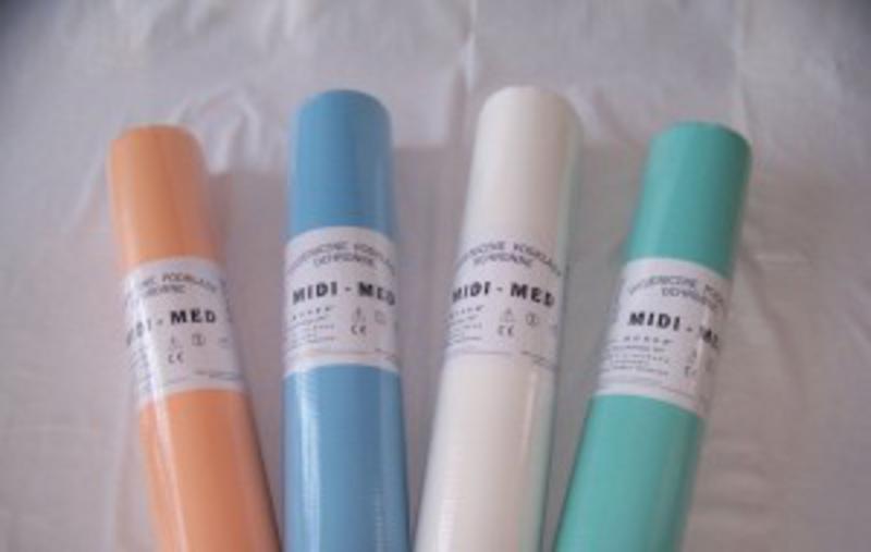 Jednorazowe podkłady medyczne wykonane są z dwuwarstwowej kolorowej bibuły, wzmocnione folią PE.
