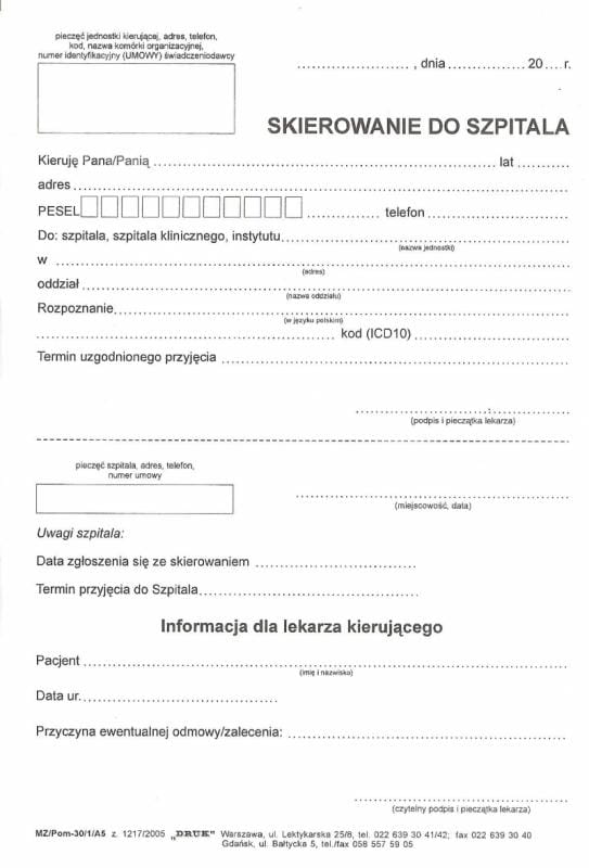 Skierowanie do szpitala