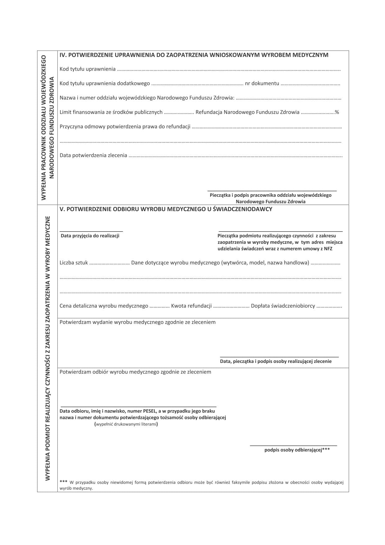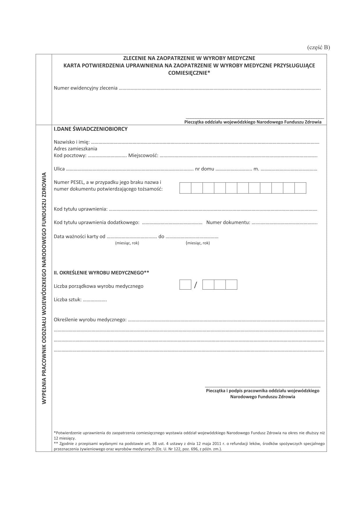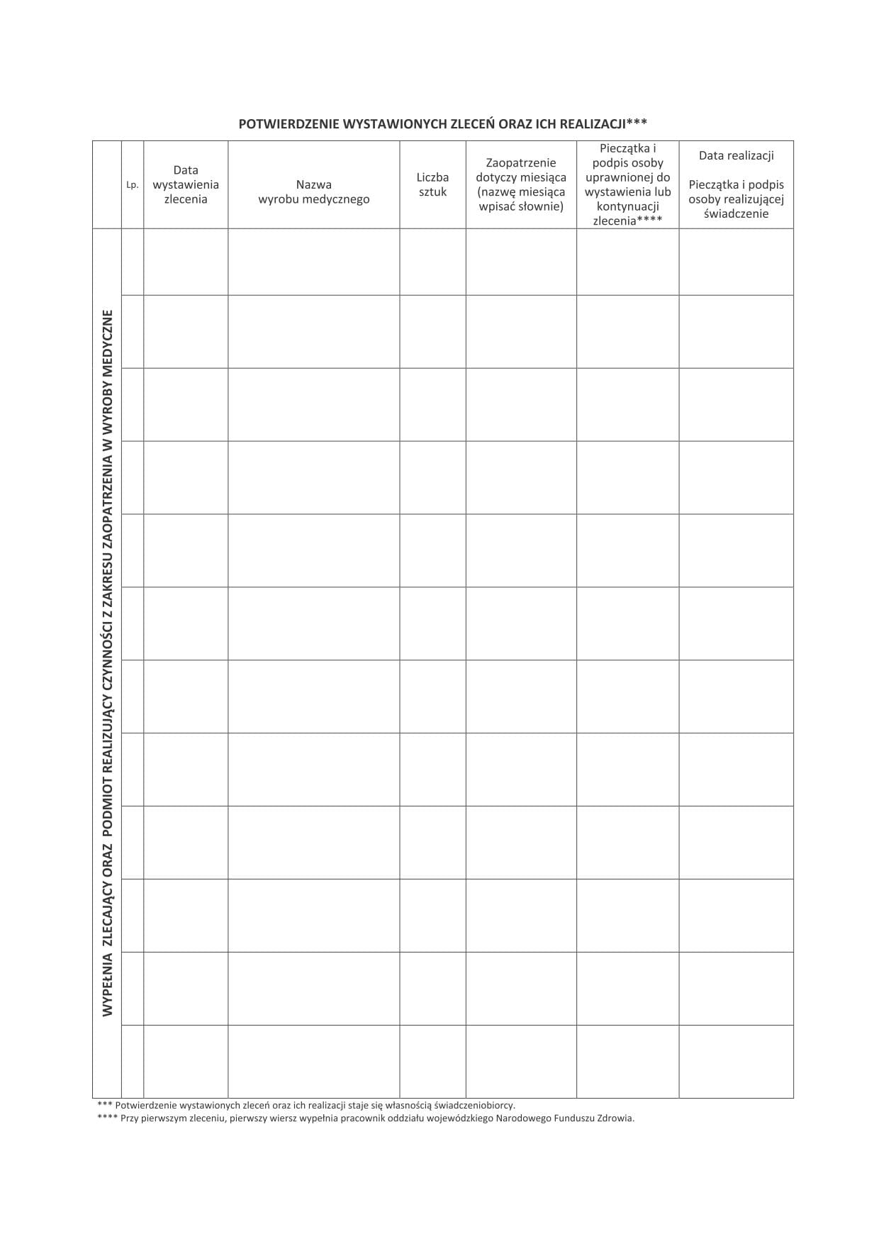 ZLECENIE NA ZAKUP ŚRODKÓW MEDYCZNYCH A100